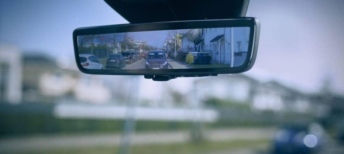 Este nuevo sistema tiene el mismo aspecto que un espejo retrovisor normal, pero en realidad es una pantalla de alta definición que muestra claramente una vista panorámica de detrás del vehículo.