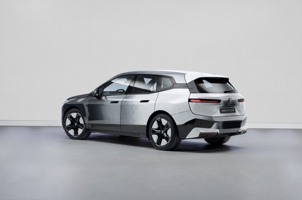 Numerosos segmentos de ePaper componen la envoltura, cada uno ajustado con precisión a la superficie aplicable. En el BMW iX Flow, el fabricante de automóviles tuvo que adaptar cada pieza de ePaper específicamente al diseño del SUV para reflejar adecuadamente los contornos, la luz y las sombras.