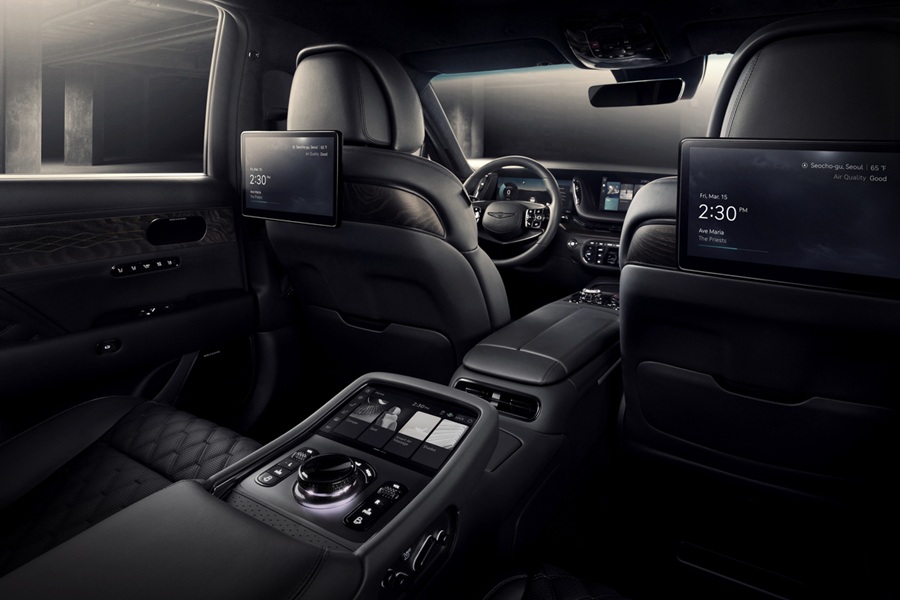 La fibra de carbono G-Matrix y ambient lighting de 64 colores personalizan el oasis. Incluye control de crucero adaptado con Highway Driving Assist II. Es un santuario coreano de confort eterno.