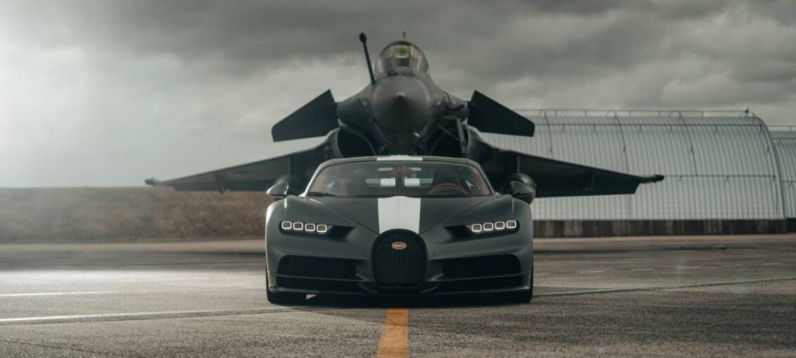 Dos máquinas en la cima de la ingeniería, el Bugatti Chiron Sport y el Dassault Rafale Marine, se enfrentan en una base naval en Landivisiau, en el noroeste de Francia. El encuentro definitivo de alto octanaje entre las mejores máquinas de Francia es un espectáculo para la vista. El conductor y el piloto miran hacia adelante, muy concentrados. Esperan la señal de salida. La famosa Tricolor Francesa cae y momentos después, el asfalto comienza a vibrar. Los dos partieron uno al lado del otro. El conductor y el piloto miran hacia el horizonte y aceleran a fondo. Con neumáticos